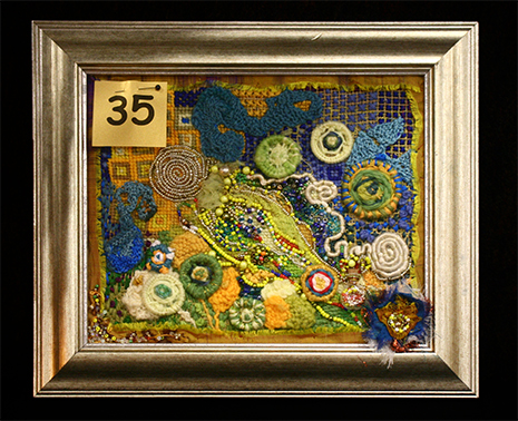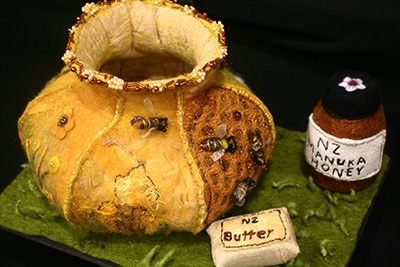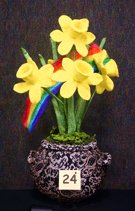 At the end of the rainbow is a pot of gold, or so it’s rumoured! The goal for this challenge was to produce a creation to fit on A4 paper, using any technique and any fibre.
